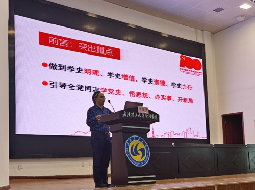 马克思主义学院王盛开副院长以“中国共产党百年艰难探索中的伟大觉醒”为主题,以历史为主线,结合时代背景介绍了中国共产党走农村包围城市,武装夺取政权;以民族斗争为主,建立抗日民族统一战线;社会主义和平改造,确立社会主义基本制度;实行改革开放,走中国特色社会主义现代化道路的四次伟大觉醒,指出中国共产党的伟大觉醒符合我国国情,符合人民意志,江山就是人民,人民就是江山。