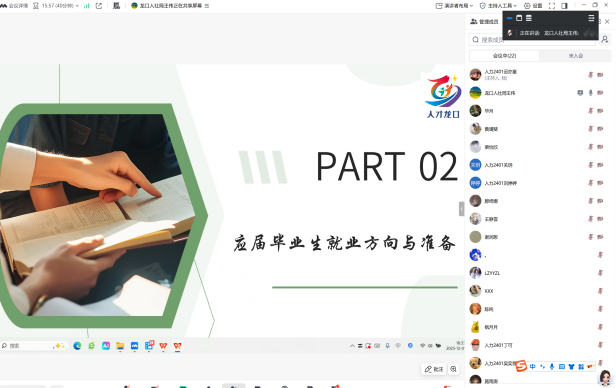 专项指导环节更是“接地气”、重实效。嘉宾结合案例,给出了“突出实践经历、量化成果数据”的简历优化秘诀,并传授了实用的面试沟通技巧,反复强调团队协作、有效沟通等软实力在职场中的重要性。互动答疑环节,同学们围绕“实习如何转化为就业优势”“人力专业跨行业发展的可能性”等现实问题踊跃提问,嘉宾逐一耐心解答,线上交流氛围热烈。同学们纷纷表示:“这次讲座就像一场及时雨,不仅理清了职业路径,更学到了马上能用上的简历和面试方法,心里有底多了。”