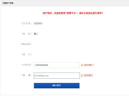 补全个人信息并提交,成功后返回主页(如图4、5、6所示)。