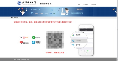此时会生成二维码,请使用用手机支付宝、微信、银联云闪付、工商银行旗下APP扫描二维码进行支付(如:图10所示)。