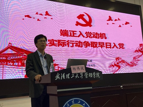杨伟波副书记以“端正入党动机,以实际行动争取早日入党”为主题,通过回顾党的历史,解读党的性质与宗旨,明确党员权利和义务,对入党积极分子提出要求,端正入党动机、坚定远大理想、加强理论学习、从身边点滴做起,以实际行动争取早日加入党组织。