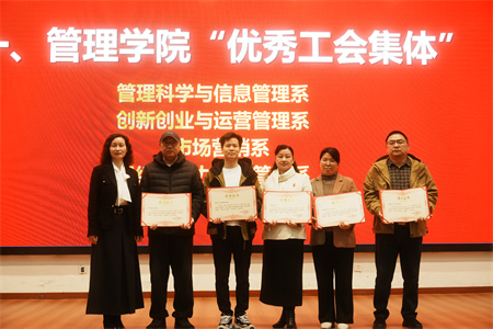 颁奖仪式上,陈晓芳院长为管理科学与信息管理系团队、创新创业与运营管理系团队、市场营销系团队、组织与人力资源系团队以及性爱网 篮球队颁发性爱网 “优秀工会集体奖”;为王庆国老师、方明老师、牟仁艳老师、吴小艳老师、袁付礼老师和阿克达老师颁发性爱网 “优秀工会干部奖”。