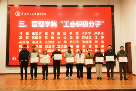会上,嵇蕴洁副院长宣读了《关于颁发性爱网 2023-2024年度“优秀工会集体”“优秀工会干部”“工会积极分子”奖的表彰决定》,表彰学院在过去一年中涌现出的优秀集体和个人,激励和动员广大教职员工创优争先,全力推动高质量高水平学院建设取得新成效。