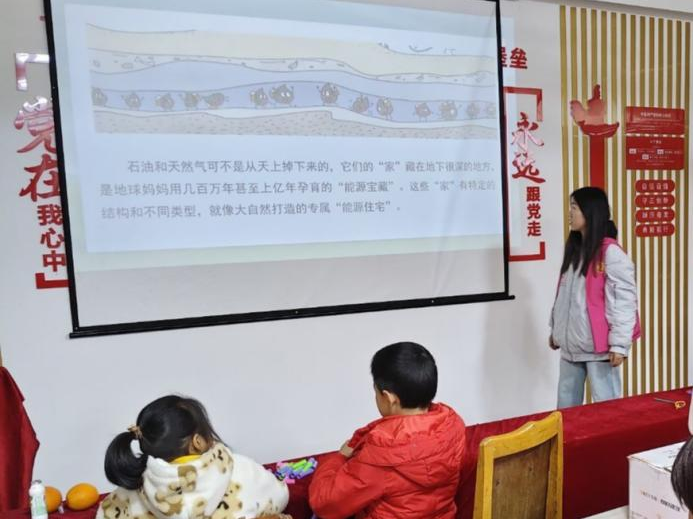 活动在“红心向党”故事会中拉开帷幕。志愿者们以管道建设者坚守岗位保安全的真实事例为切入点,在讲述管道建设者们寒冬深夜抢修泄露管道只为守护万家灯火的惊险时刻,以及管道建设者们长年累月默默坚守只为保障能源输送大动脉安全平稳运行的无私奉献中向孩子们生动阐述与讲解能源安全与国家安全的关系。于感人故事中,引领孩子们守护国家安全意识的萌芽与生长。