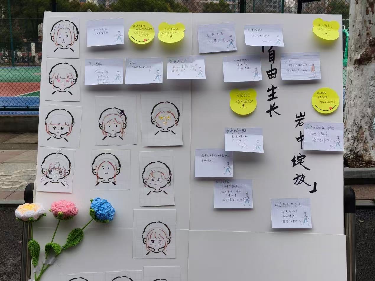 活动伊始,创意互动于智苑食堂门口正式拉开帷幕。“自由女神画”区域吸引了众多同学执笔参与,大家或专注勾勒身边优秀的女性形象,或自由创作象征女性力量的图案,用色彩表达对“她力量”的真诚赞美。相邻的“心愿墙”前也聚集了大量同学,大家认真书写祝福与期许,一张张承载真挚情感的便签很快贴满展板,成为校园中一道温暖的风景。现场工作人员有序分发针织鲜花与纪念观影券,以细致服务保障活动顺畅进行,展现“贴近同学、务实服务”的工作作风。