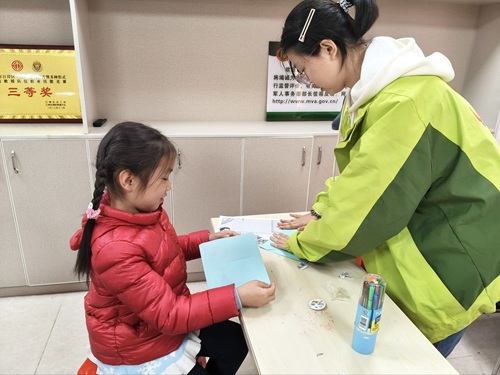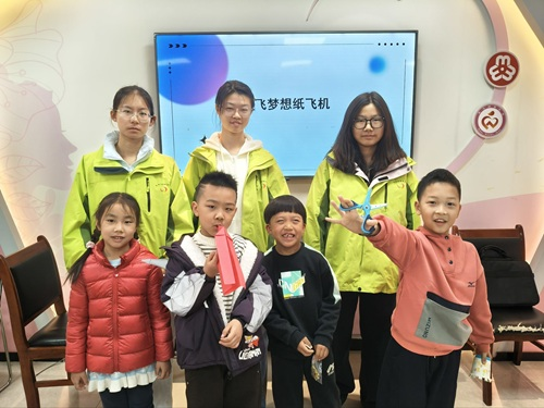 不仅如此,课间的“劳动知识你来比划我来猜”游戏,让教室里充盈着欢声笑语的同时,也让劳动知识在互动中入脑入心。游戏过后,志愿者引导孩子们从家庭、学校、社区三个场景探讨日常劳动内容,指导大家制定专属“劳动成长计划表”,将劳动精神延伸至生活点滴。志愿者们通过积分统计,为表现优秀的同学颁发“劳动小能手”奖状与徽章,让孩子们收获满满的获得感与成就感。课堂最后,志愿者们引导孩子们将自己的梦想写在纸飞机上。通过放飞纸飞机,孩子们的梦想也在悄然启航。