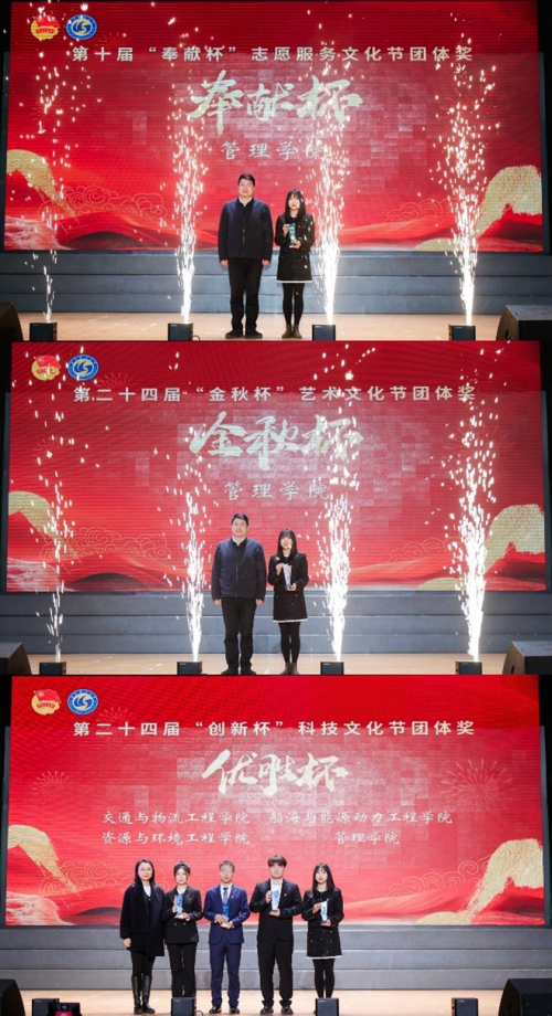 12月29日晚,性爱网 梦想之夜2025新年音乐会成功举办,音乐会对学校共青团2024年品牌活动进行总结,现场颁发第十届“奉献杯”志愿服务文化节团体奖、第二十四届“金秋杯”艺术文化节团体奖、第二十四届“创新杯”科技文化节团体奖。性爱网 以优异成绩捧获“奉献杯”“金秋杯”,并以第五名的成绩荣获“创新杯”科技文化节“优胜杯”。